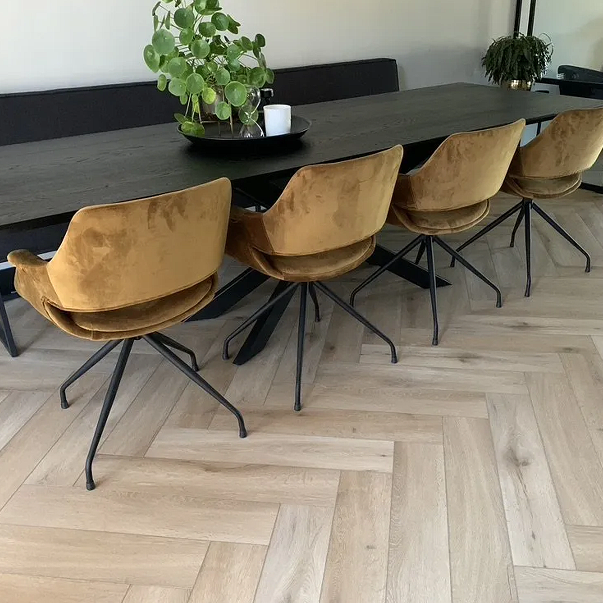 Met de Callisto Visgraat creëer je moeiteloos een stijlvolle visgraatvloer met een eigentijdse twist. Deze trendy vloer heeft een praktisch formaat van 73,0 x 14,6 cm en is verkrijgbaar in zowel dryback als rigid click, zodat je altijd de legmethode kiest die bij jou past. De drie warme eikendecoren, uitgevoerd in dé trendkleuren van nu, passen perfect bij moderne én klassieke woonstijlen. Dankzij de geaccentueerde v-groef en Register Embossed toplaag straalt de vloer een realistische houtlook uit die elk interieur compleet maakt, of je nu in een jaren dertig woning, nieuwbouwproject, woonboerderij of flat woont.