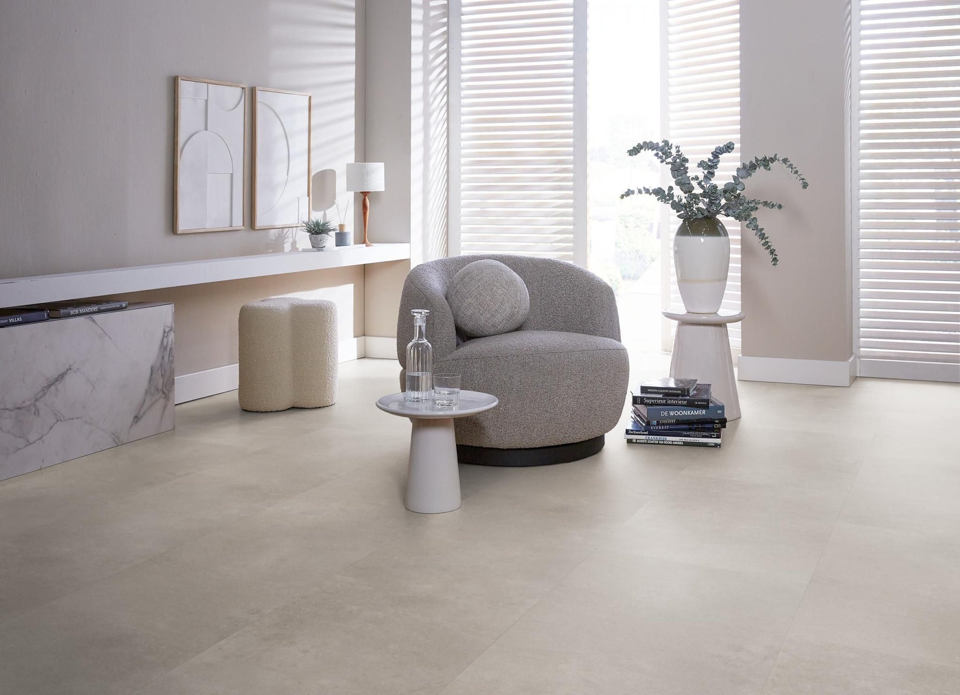 Verliefd op een betonnen vloer, maar is dit voor jouw woning helaas geen optie? De Sarino is een goed alternatief! Deze betonlook vloer wordt aangeboden in 4 kleuren en is verkrijgbaar in twee tegelformaten: vierkant en rechthoekig. Combineer deze pvc vloer met hout of aardetinten, voor een warme uitstraling in jouw interieur.