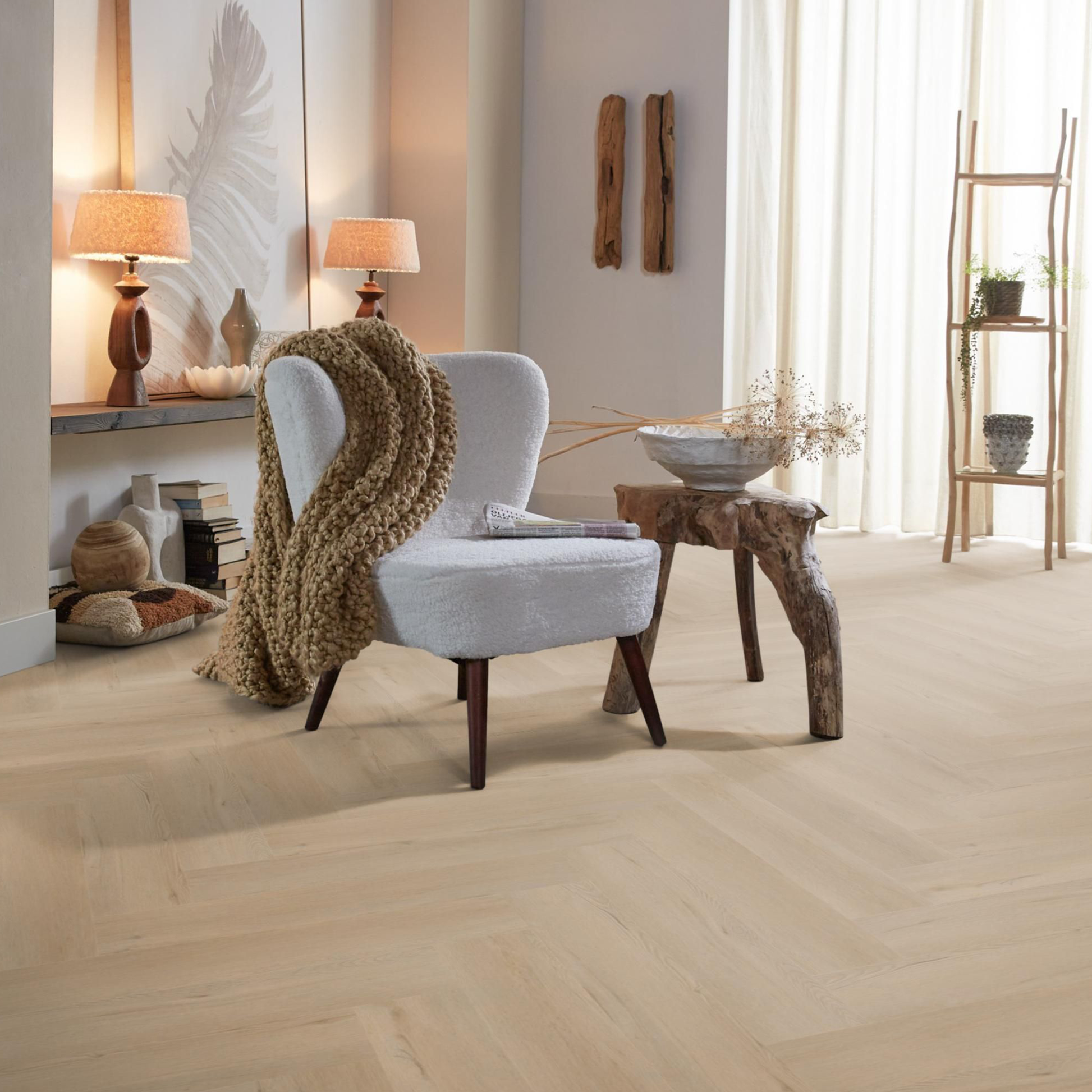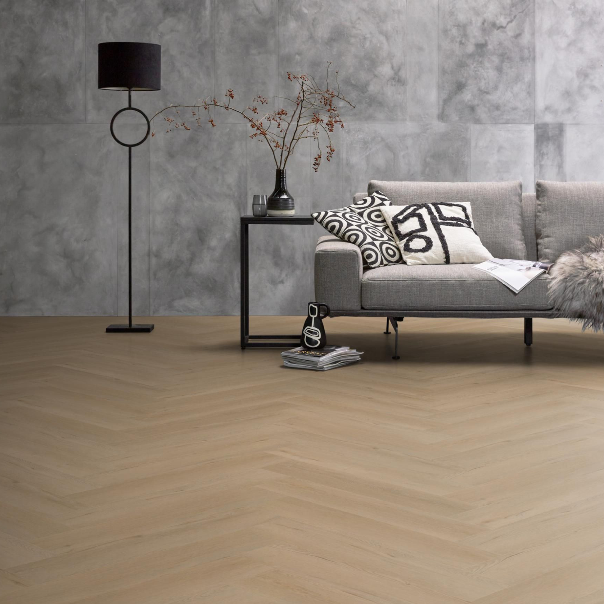 De Spigato Viranto visgraat kenmerkt zich door het extra grote formaat van maar liefst 76,5 x 15,3 cm en is daarmee een echte eyecatcher in jouw woning. Deze visgraatvloer is verkrijgbaar in twee trendy kleuren: warm beige en warm natural. De collectie is verkrijgbaar met een toplaag van 0,55 millimeter en daarom goed beschermd en ontzettend sterk. Spigato visgraat dryback dark oak