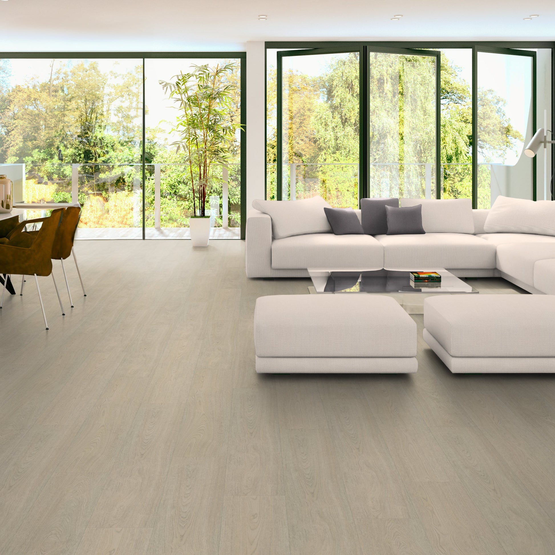 De Terreno pvc-serie is beschikbaar in twee lichte kleuren, perfect voor een frisse uitstraling. Kies uit XL-planken voor een ruimtelijk effect of het elegante visgraat formaat voor een klassieke touch. Beide opties zijn duurzaam, onderhoudsvriendelijk en ideaal voor elke ruimte in huis.